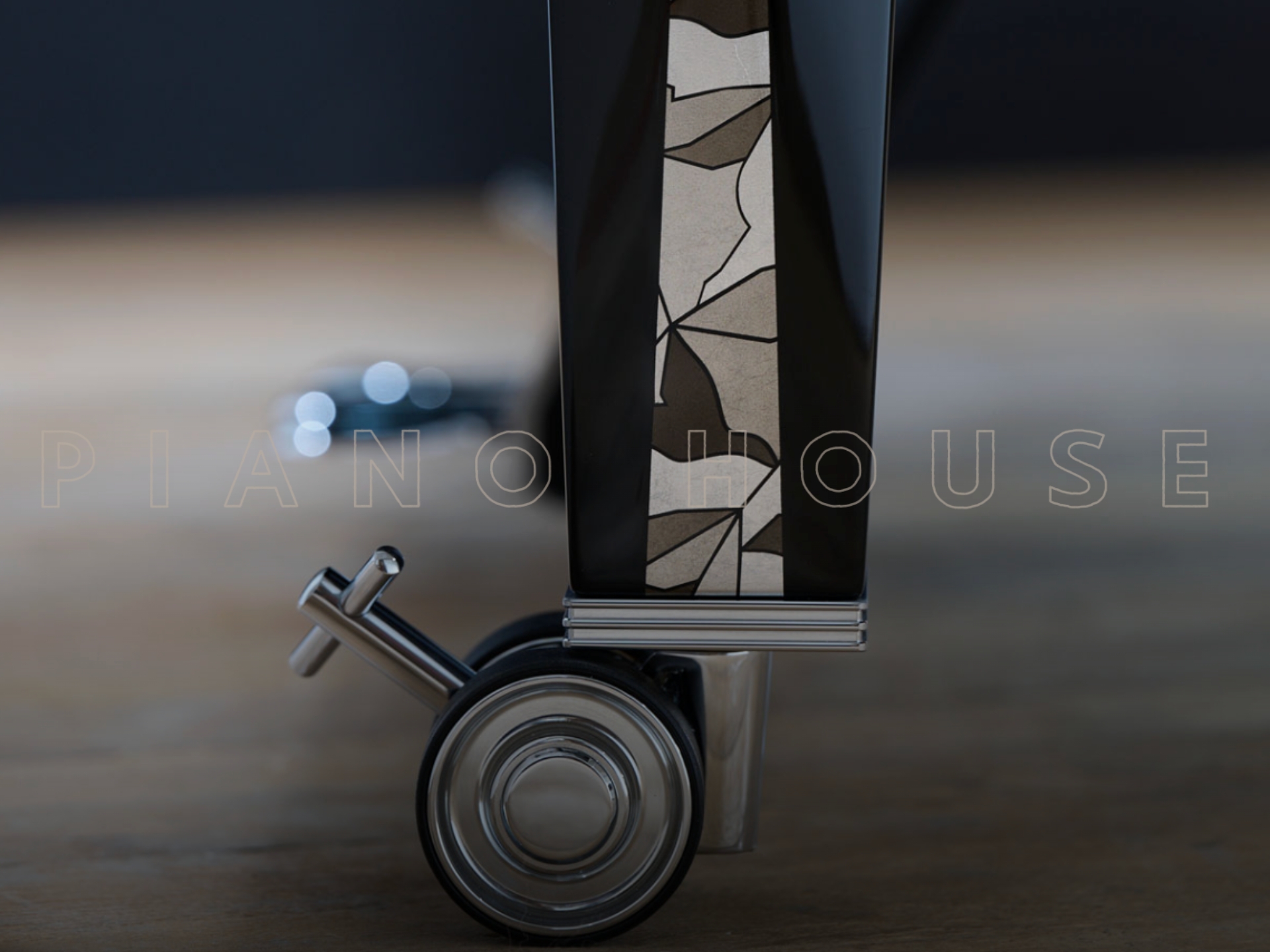 Các bộ phận trên bề mặt của cây đại dương cầm, bao gồm cả nắp ngoài và nắp trong, được trang trí bằng họa tiết khảm chim của Dàn nhạc Giao hưởng Philharmonie, được chế tác tỉ mỉ với tông màu xám bạc của lá bạc và được bảo vệ bởi lớp phủ trong suốt, bóng loáng. Bàn nhạc được lấy cảm hứng từ mặt tiền của tòa nhà và phản ánh sự kết hợp hoàn hảo giữa Steinway & Sons và Philharmonie de Paris. Chân đàn, đàn lia và dùi đàn được thiết kế đặc biệt, vành đàn bên trong màu mun, tấm gang bạc sẫm, cùng với các phụ kiện kim loại và bánh xe đôi mạ crôm càng làm nổi bật vẻ thanh lịch của cây đại dương cầm.